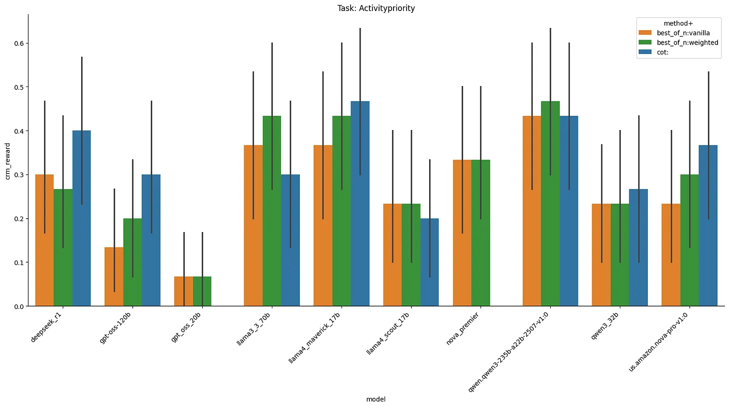 Start TestingDifferent models excel at different reasoning patterns. Input test prompts and compare side-by-side performance using standardized evaluation frameworks like CRMArena-Pro and more.